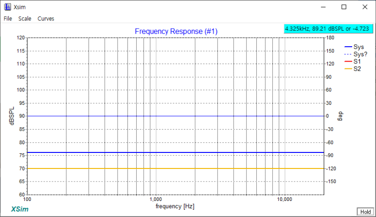 이때 스피커유닛에 주파수특성이 정보가 없기때문에 아래와 같이 일자로 보입니다.
