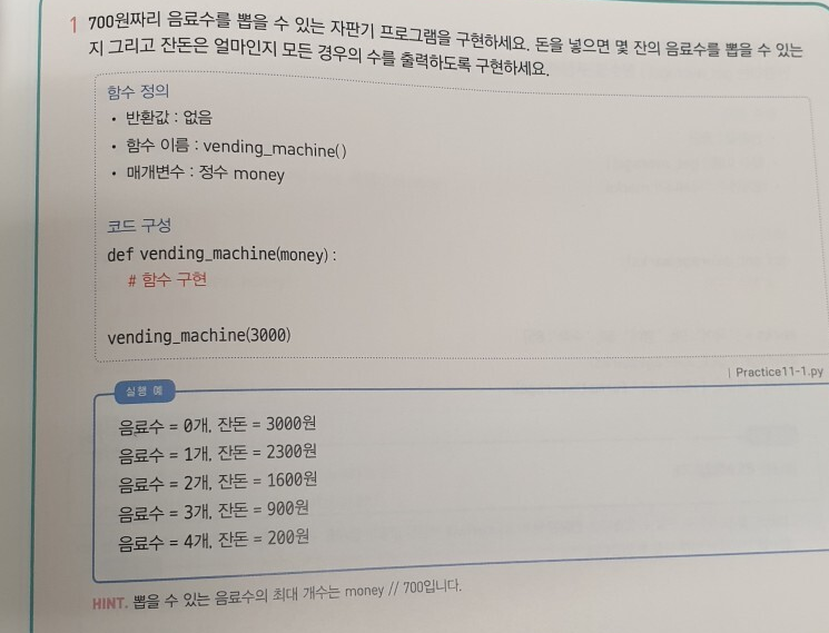 money -= 700 # 1개씩 증가하기 땜눈에 -700