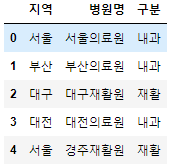 df = pd.read_csv('hospital.csv', encoding='cp949')