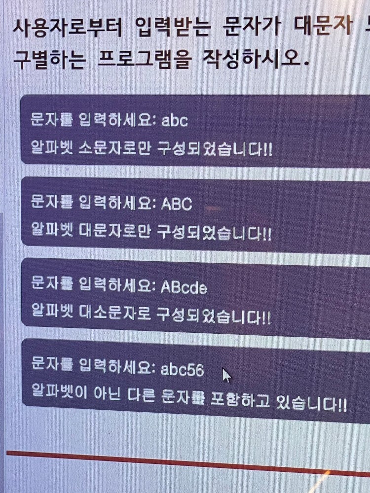 print("알파벳이 아닌 다른 문자를 포함하고 있습니다.")