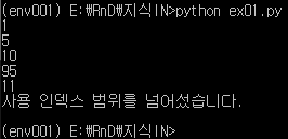 except: # 인덱스 범위 벗아나는 예외 발생시 출력