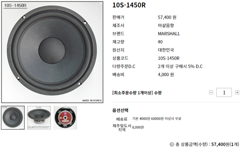 마샬 6.5인치(0610-4048P)와 10인치(10S-1450R)을 보겠습니다.(하단 참고)