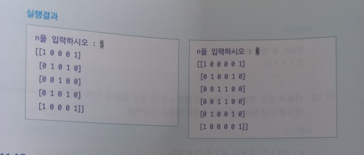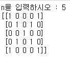 arr[i][len(arr)-1-i] = 1 # ↙방향. arr[i][i]로 대각선 인덱스 찾고 해당 값을 부여