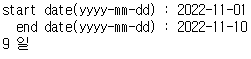 e_date = input(' end date(yyyy-mm-dd) : ')