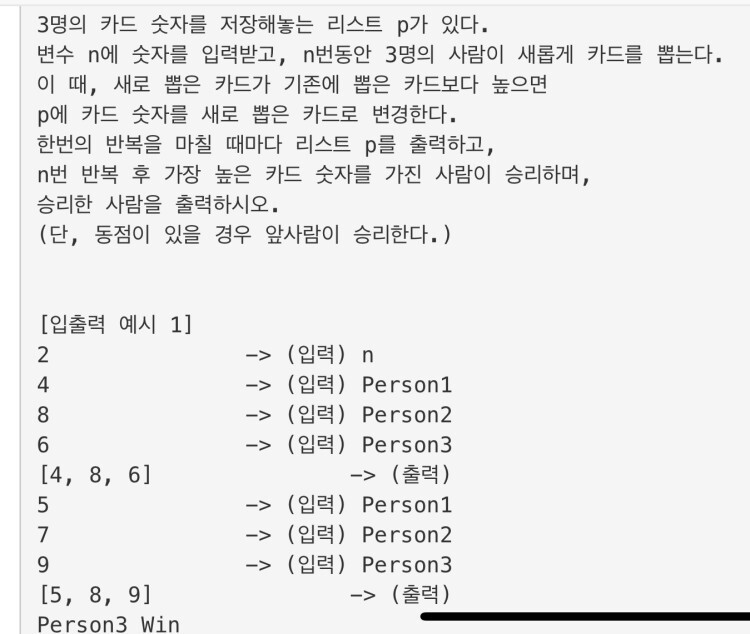 print(f'Person{idx+1} Win') # 인덱스는 0부터 시작이니 +1 해서 학생구분