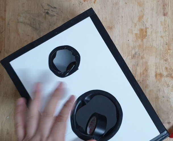 그리고 원형 구멍 즉 스피커 유닛, 포트, 바나나플러그가 장착되는 부분에도 테이프를 붙여주었습니다.