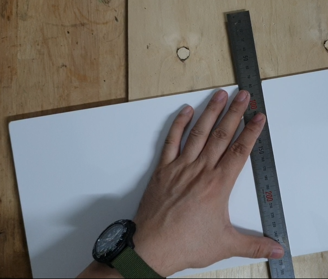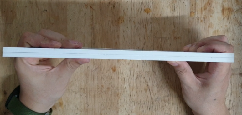 이렇게 가재단 하는 이유는 5T 두장을 겹치게 붙여서 10T로 만들려는 것입니다. 처음에는 정확한 Size로 자르니 붙일 때 틀어져서 정확한 Size가 나오지 않았습니다. 정확한 Size로 하기 위해서 가재단 후 붙이고 이후 정확한 Size로 재단하는 것이 좋았습니다.