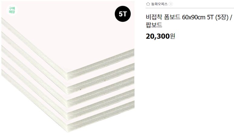 폼보드는 폴리스티렌에 종이를 양면으로 합지 하여 만든 보드입니다.