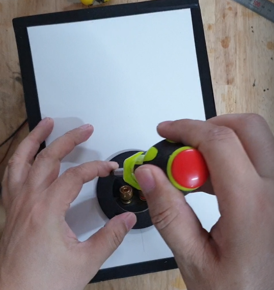 스피커 유닛은 나사로 연결해 주었습니다. 이것도 위의 바나나플러그와 같이 살짝만 조여 줍니다.