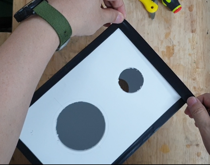 원형 구멍을 저는 원형 커터를 사용했습니다. ('올파 원형 절단 커터 CMP-1/DX / 컴퍼스커터')