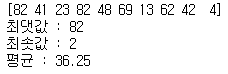 print('평균 :',np.average(a))