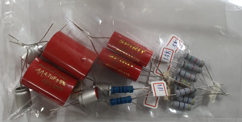 앰프 조립 시 러그핀을 사용해서 부품을 배치해 두었기 때문에 대부분의 업그레이드 부품을 기존 저항 위해 배치해서 연결했습니다.