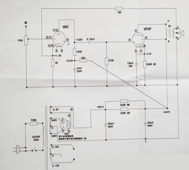 부품은 6N2-6P1 앰프로 되어 있지만 제가 6P14(EL84), 6P6P(6V6) 앰프들도 진공관외 다른 부품과 회로는 같은 것을 확인했었습니다.