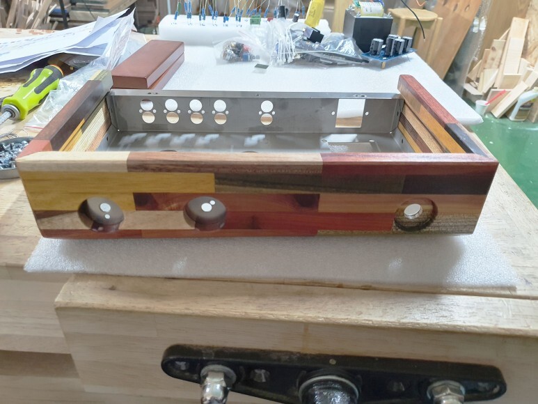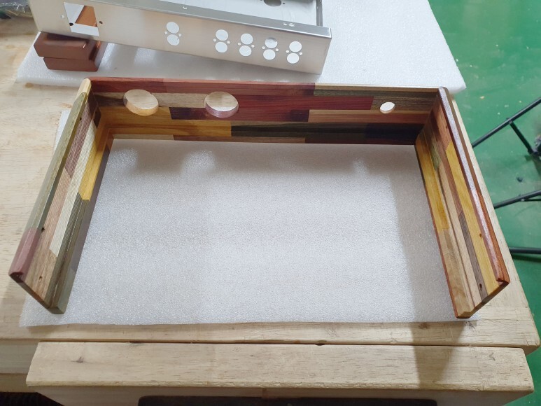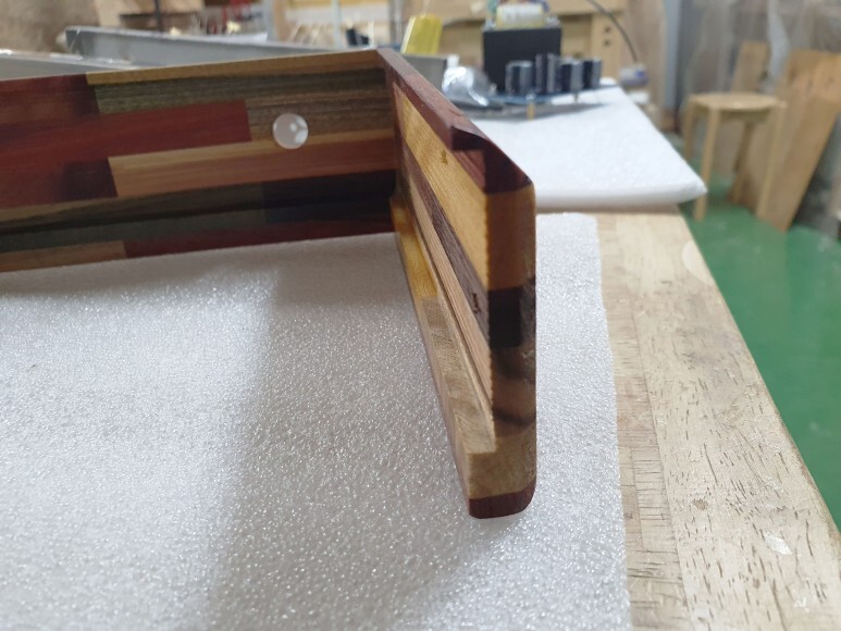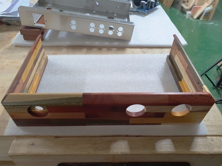 다른 앰프들은 옆판 나무를 새로 만들어 사용했는데, 주위분들의 요청으로 앞판까지 만들기로 했습니다.