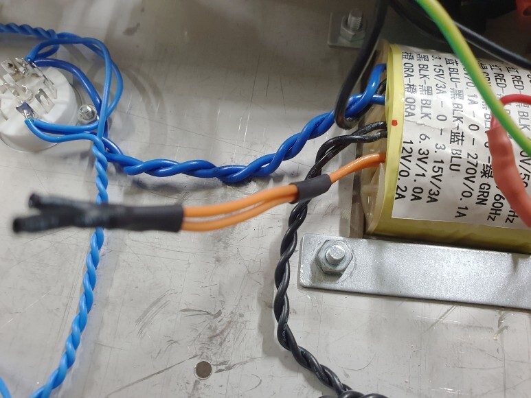 진공관의 전원선들을 꼬아서 연결해 줍니다.