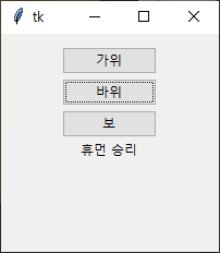 b2 = ttk.Button(frame, text='바위', command=lambda: select('바위'))