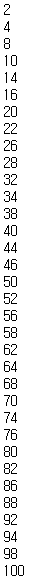 1부터 100사이의 수 중에서 2의 배수이면서 3의 배수가 아닌 수를 모두 출력하는 프로그램을 작성하시오.