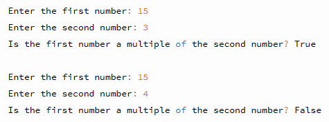 print('Is the first number a multiple of the second number?',flag) # 출력