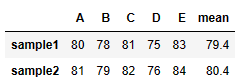 df.loc['sample1'] = [80, 78, 81, 75, 83]