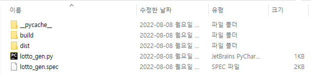 *.spec 파일 및 dist, build, _pycache_ 폴더가 만들어 집니다.