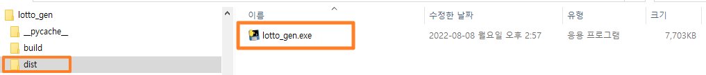 다음과 같이 dist 폴더에 실행파일이 있습니다.