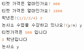 - 입력 조건: 티켓 정상가격, 학년, 논사소 수강 여부