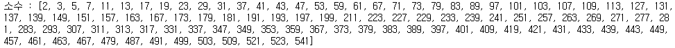 print(f"소수 : {lst}")