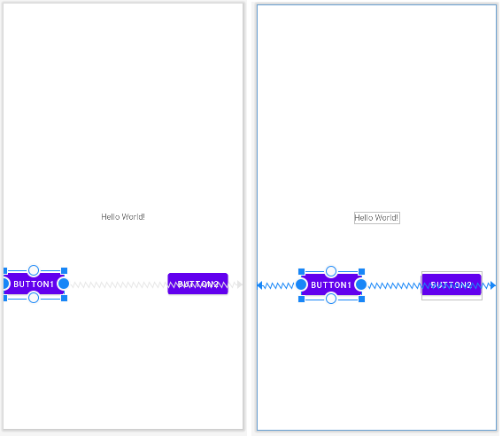 - BUTTON2를 클릭해서 왼쪽 원을 드래그해서 BUTTON1의 오른쪽에 가져가면 붙게됩니다.