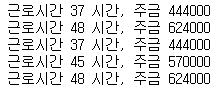 print(f"근로시간 {wt} 시간, 주금 {pay}")