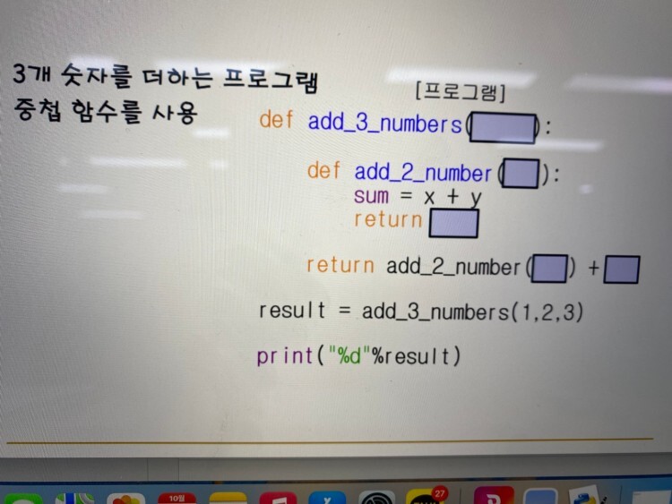 return add_2_number(x, y) + z # add_2_number 함수는 이 라인에서 실행됨. 위에서는 정의만 한것임. add_2_numbers의 결과와 z를 더함