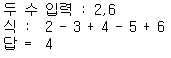 예를 들어 2,6 입력 받으면 2-3+4-5+6 계산