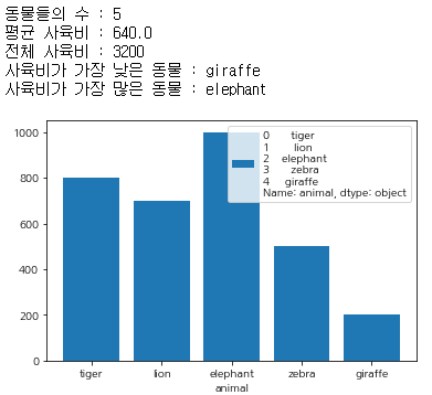 print("사육비가 가장 낮은 동물 :",end=' ')