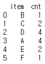 X = pd.DataFrame(data=['B','C','D','A','E','F'], columns=['item']) # X DataFrame 만들기