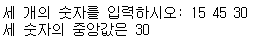 print('세 숫자의 중앙값은',central(in_str)) # 함수 실행해 결과를 출력