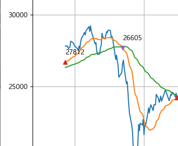 if df['ma60'][i] < df['ma20'][i] and chk == 0: