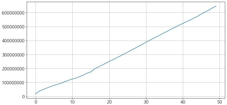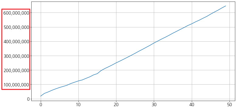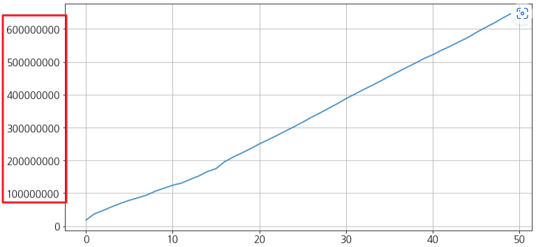 데이터는 그냥 plot으로 그리면 아래와 같이 지수로 표시됩니다.
