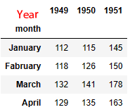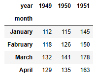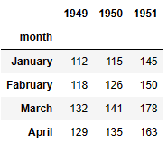 df.columns = ['month', '1949','1950','1951']