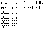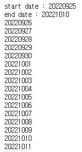 시작 날짜 20221017 와 마지막날짜 202221020 를 입력 받으면 어떤 식으로 해야