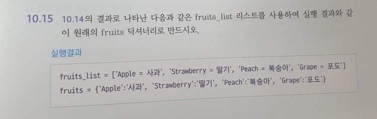 fruits[fruits_list[i].split()[0]] = fruits_list[i].split()[2] # split()은 공백으로 분리. 3개가 됨.