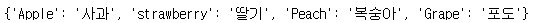 rev_fruits = dict((y, x) for x, y in t) # 튜블의 순서를 바꿈