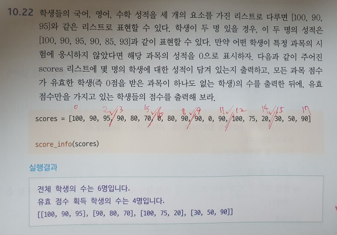 for i in range(0, len(scores), 3): # range는 0부터 시작, scores 요소수까지, 그리고 step을 3개로 함. 그러면 i는 0, 3, 6, 9, 12, 15