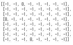 lst = [[-1]*8 for i in range(8)] # 8 x 8 배열