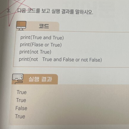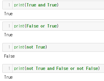 - 앞에 not이 붙으면 반대가 됩니다. 여기서는 True의 반대, 즉 False 됩니다.