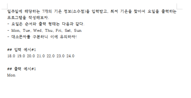 n_min = min(nums) # 입력 온도정도 중 최소값을 찾음
