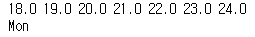 weekday = ['Mon','Tue','Wed','Thu','Fri','Sat','Sun'] # 요일을 리스트로 저장