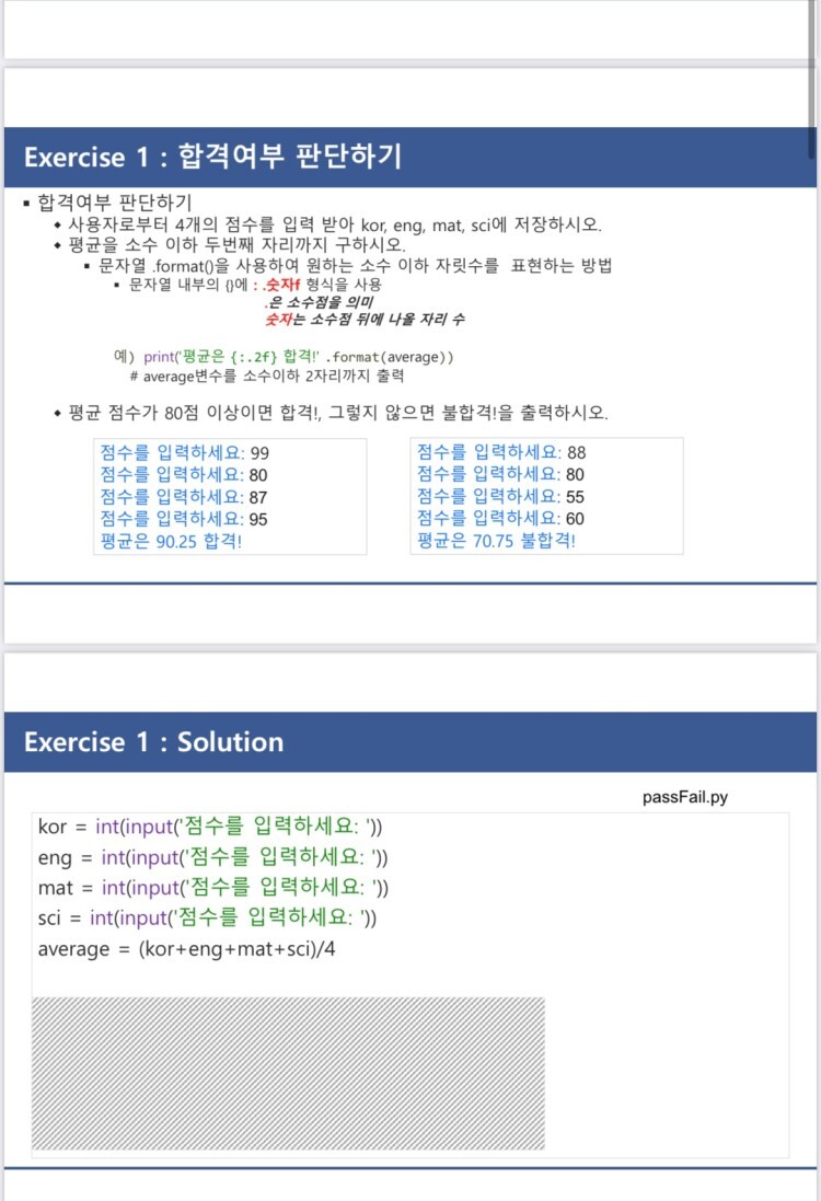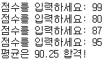 print('평균은 {:.2f} 합격!'.format(average)) # 출력. .2f 실수 소수점 2자리 표시
