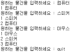if p == 'quit': # 입력이 quit면 break로 while 반복 빠져나감