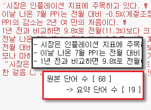 원본 단어 수 [ 68 ] -> 요약 단어 수 [ 19 ]