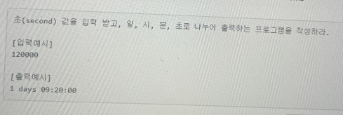seconds %= (24 * 3600) # days로 계산된 초수를 뺌