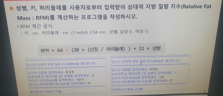 RFM = 64 - (20 * (h / (w*2.54))) + 12 * g # 공식 계산. inch를 cm로 변환(inch * 2.54)